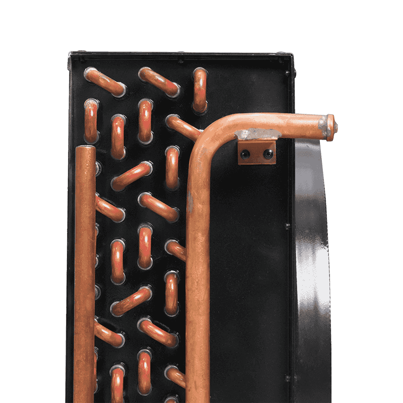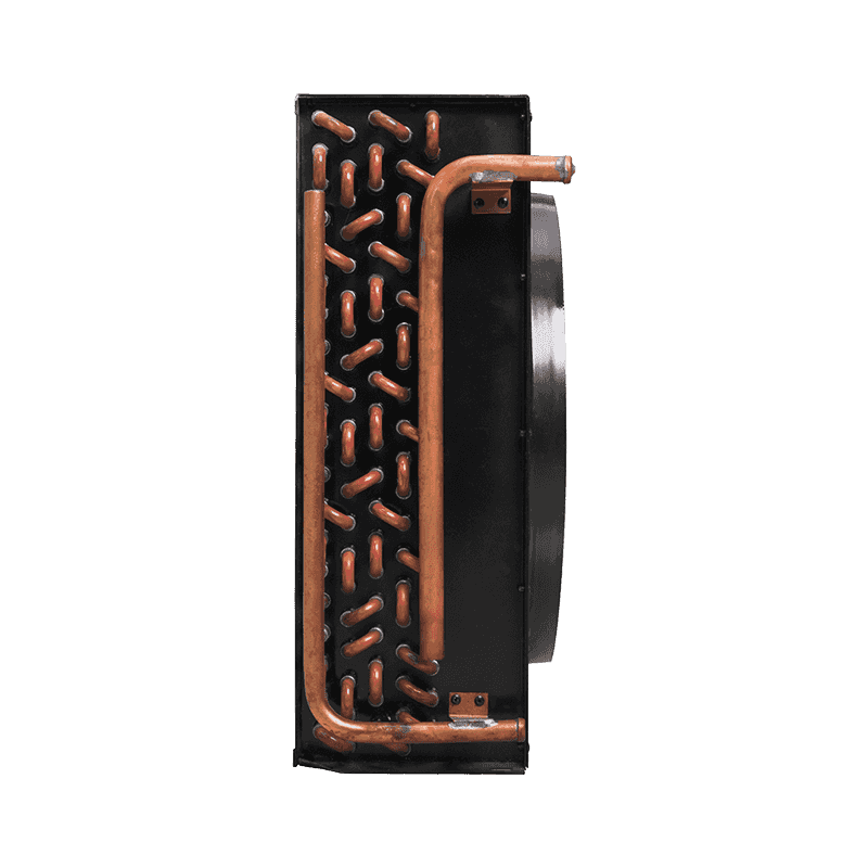 Gegelung efektif yang tinggi diperbuat daripada tiub tembaga berkualiti tinggi o 9.52mm dan profil khas aluminium sirip. Penukar hasrat yang diuji dan diuji di bawah tekanan 30 bar.